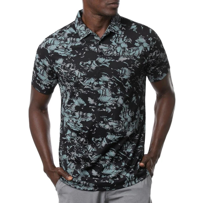 Play 18 holes in comfort and then hit the town after in the TravisMathew Alley Oop Golf Polo. The Alley Oop Polo is built with a polyester/spandex blend with an enhanced four-way stretch that provides supreme comfort throughout the golf swing. This polo is also moisture wicking to pull sweat from the body and keep you dry and comfortable throughout the round. There are built-in collar stays that ensure the collar maintains its shape for a stylish look. This polo pairs well with pants and shorts and the abstract print and embroidered TM logo on left chest add fun styling that will have you looking good on and off the golf course.