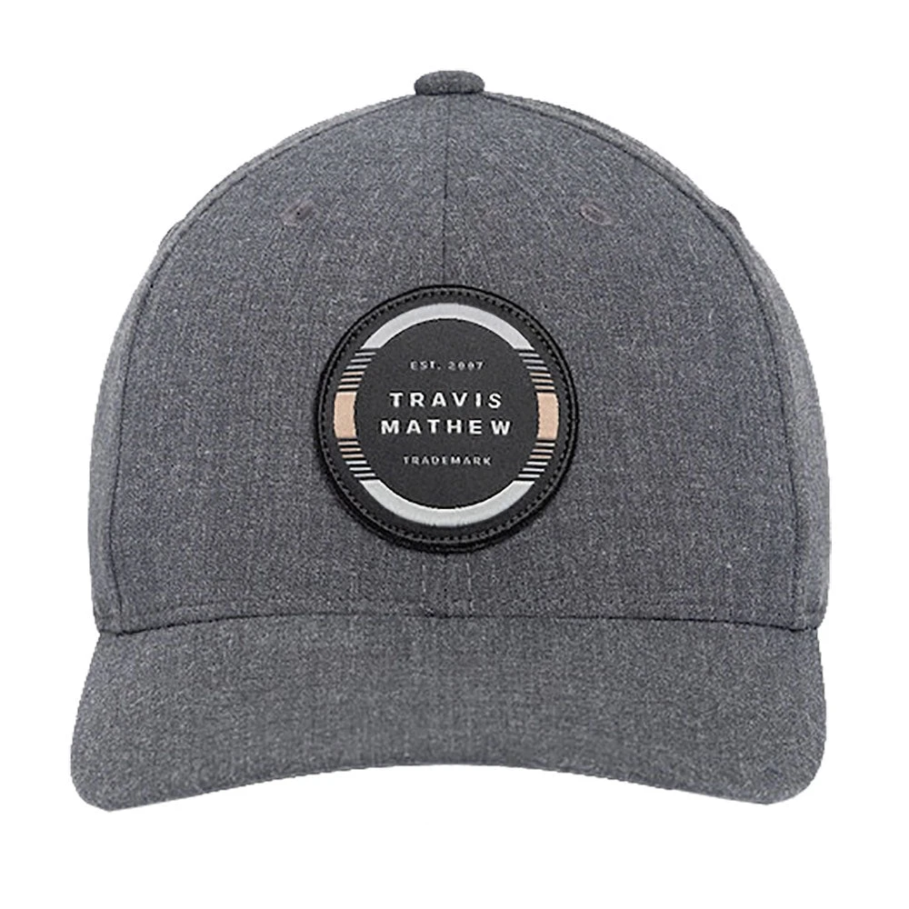 Complete your wardrobe with the TravisMathew Free Roll Mens Golf Hat. This hat is made with an adjustable snapback so you always get just the right fit. It features a logo-driven circular patch created from multi-colored stripes and a stretch sweatband that helps prevent sweat from dripping down your face.