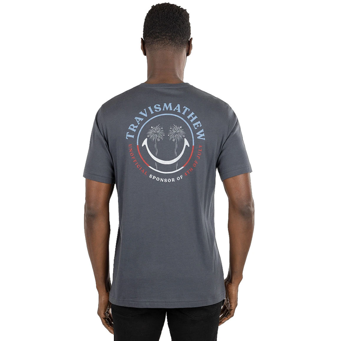Perfect for a summer day at a backyard BBQ or for a night out on the town comes the TravisMathew Party Boss T-Shirt. The Party Boss tee is built with a polyester/spandex blend with an enhanced four-way stretch that provides supreme comfort throughout the golf swing. This tee is also moisture wicking to pull sweat from the body and keep you dry and comfortable throughout the round. The red, white and blue smiley face graphic on the back and left chest that are accented by strategically placed palm trees will have you looking good wherever you go.